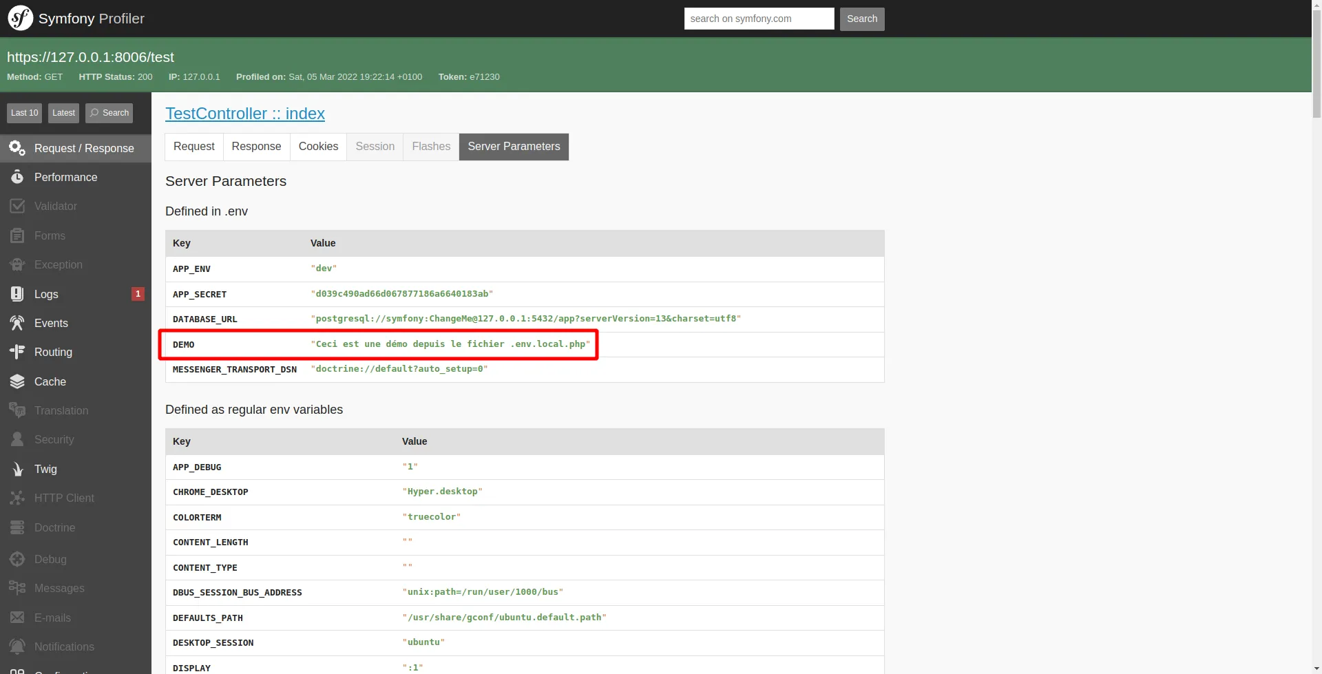 'DEMO' => 'Ceci est une démo depuis le fichier .env.dev.local',