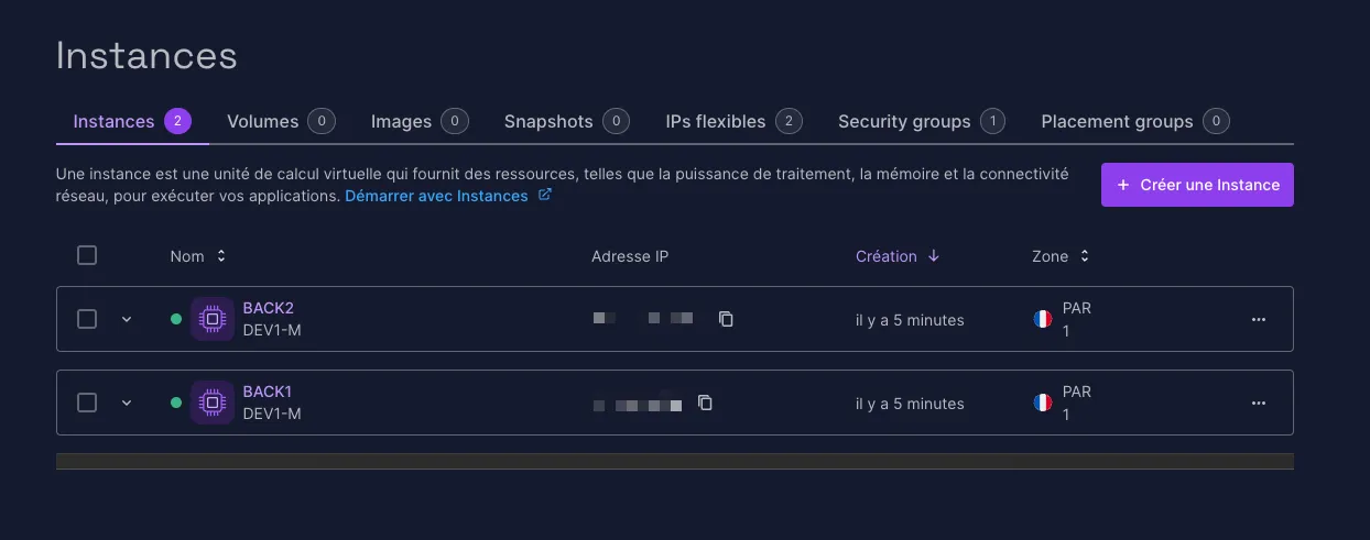 Pour notre seconde démonstration, nous allons commander deux VPS (instance) chez Scaleway, un fournisseur de services cloud français.