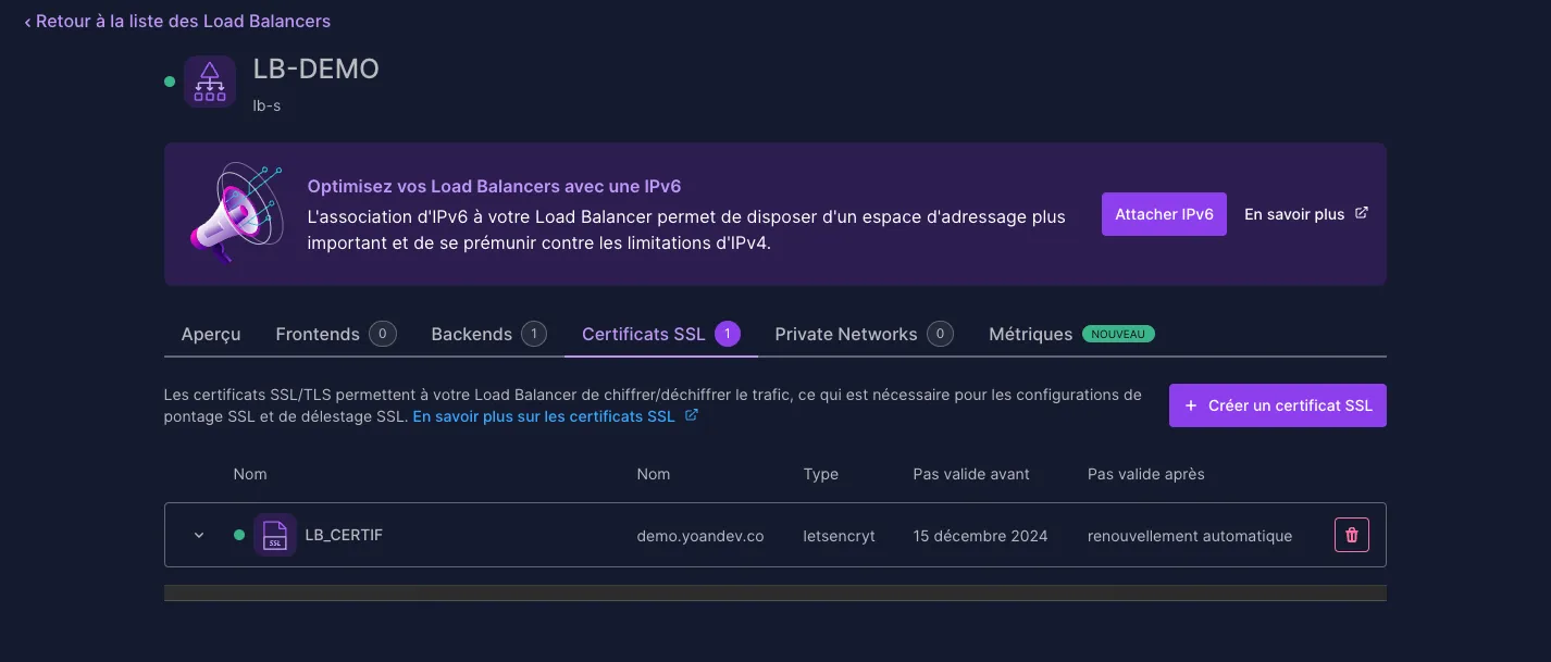 Récupérez l’adresse IP de votre Load Balancer, et configurez votre DNS pour pointer vers cette adresse IP.