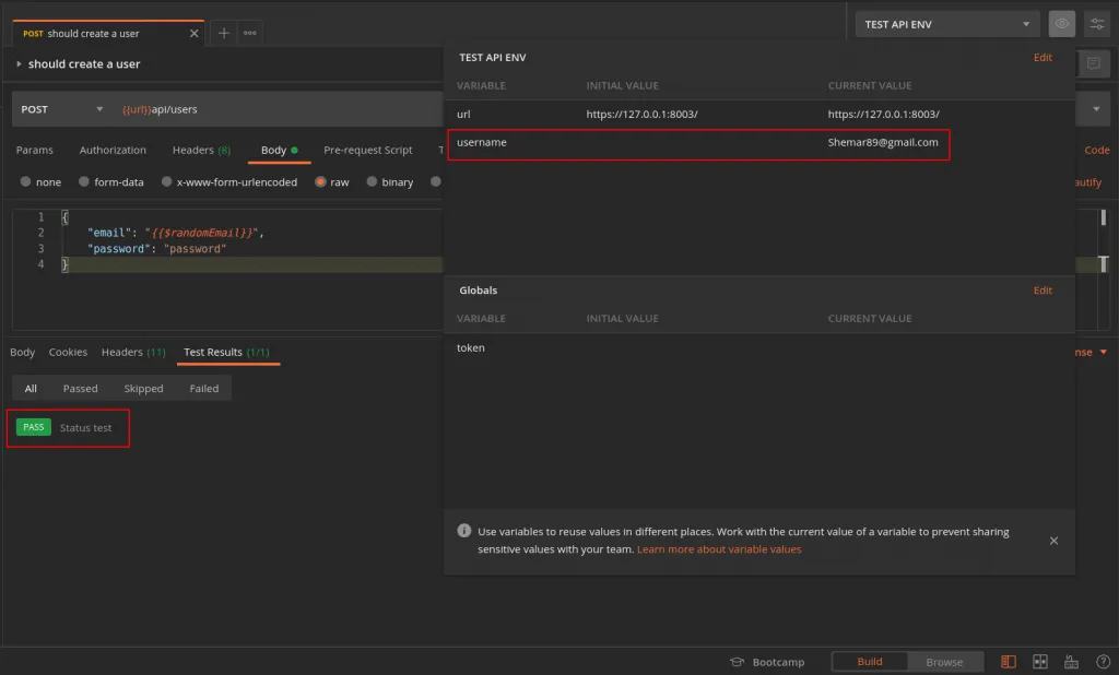 Écrivons notre test, et stockons-le “id” de cette ressource (nous allons en avoir besoin juste après !).