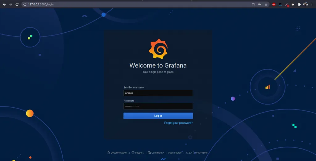 Une fois que dockprom à bien démarré l’ensemble de ses conteneurs, il est possible d’ouvrir une session sur Grafana, à l’adresse http://127.0.0.1:3000/.