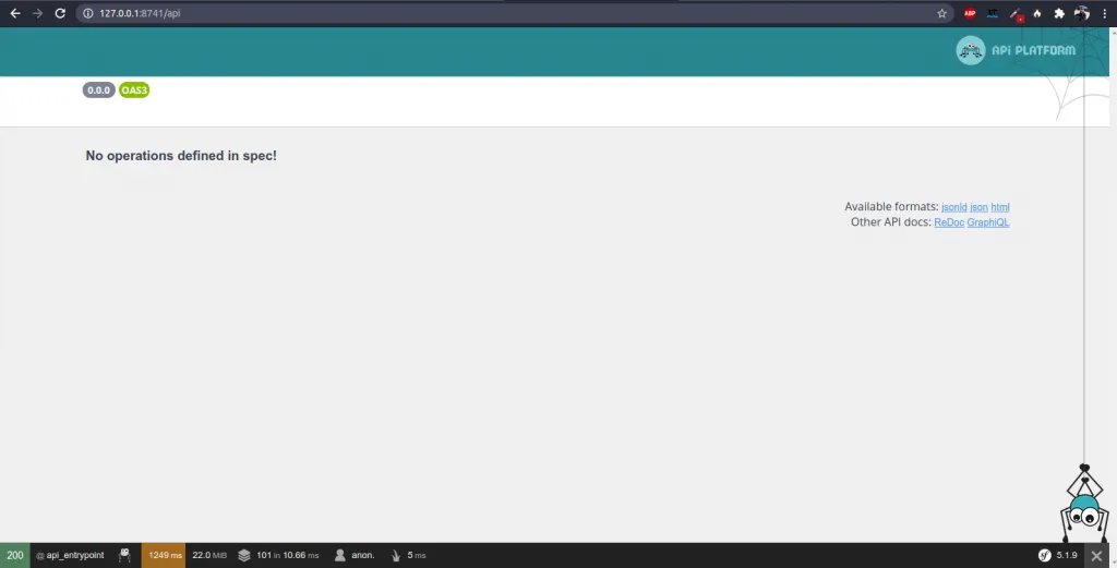 Et vérifions dans un navigateur que tout est ok à l’adresse http://127.0.0.1:8741/api.