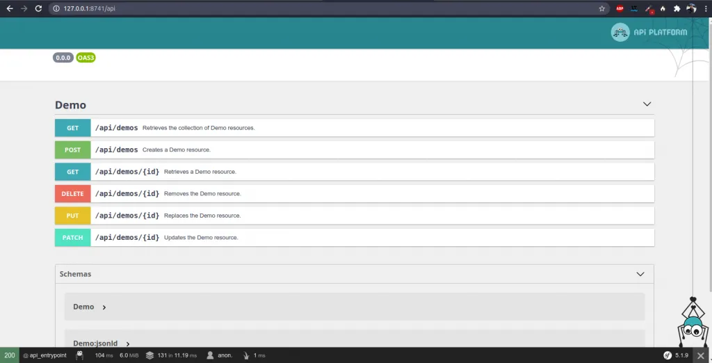 Et vérifions que notre API est à jour à l’adresse http://127.0.0.1:8741/api