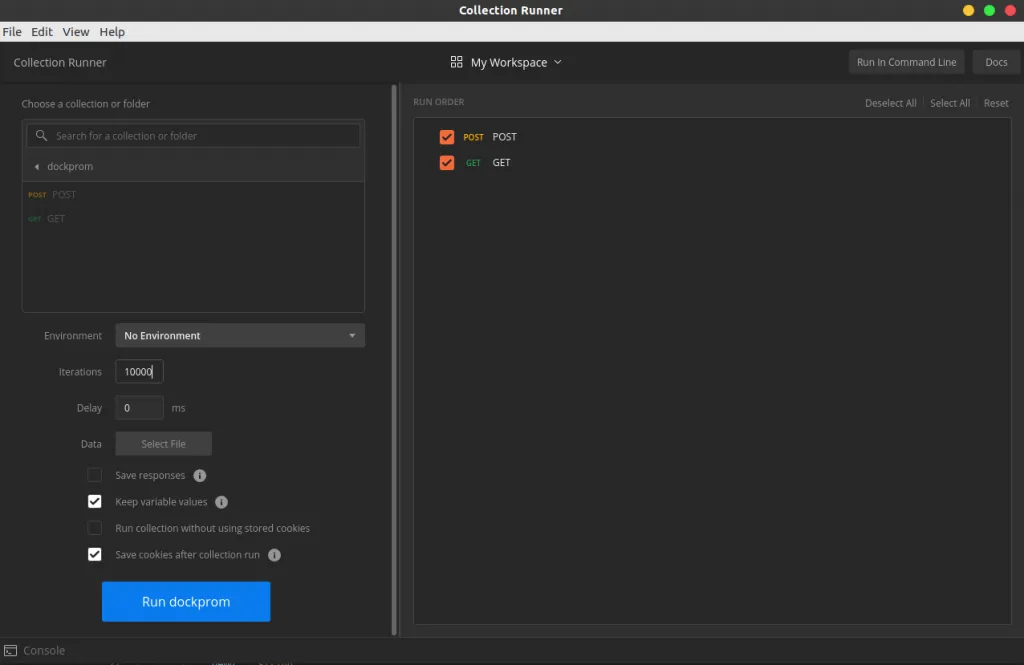 Et lançons 10 000 fois les requêtes POST et GET via le Runner de Postman ;-)