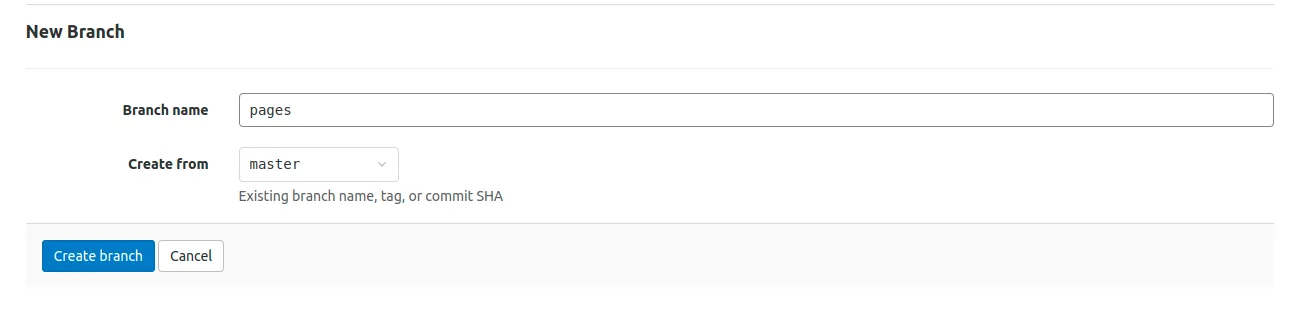 - Créons la branche pages depuis GitLab (cela devrait immédiatement lancer le pipeline de déploiement)