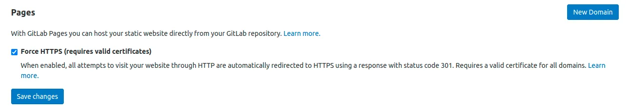 - Une fois la CI/CD exécutée, dans Settings > Pages, activons le https et faisons un save changes