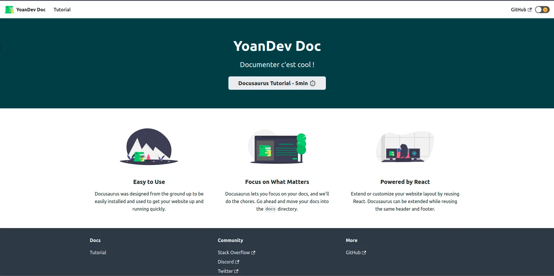 L’objectif de Docusaurus c’est bien de produire de la documentation et de la rendre accessible dans une belle interface ! Allons-y !